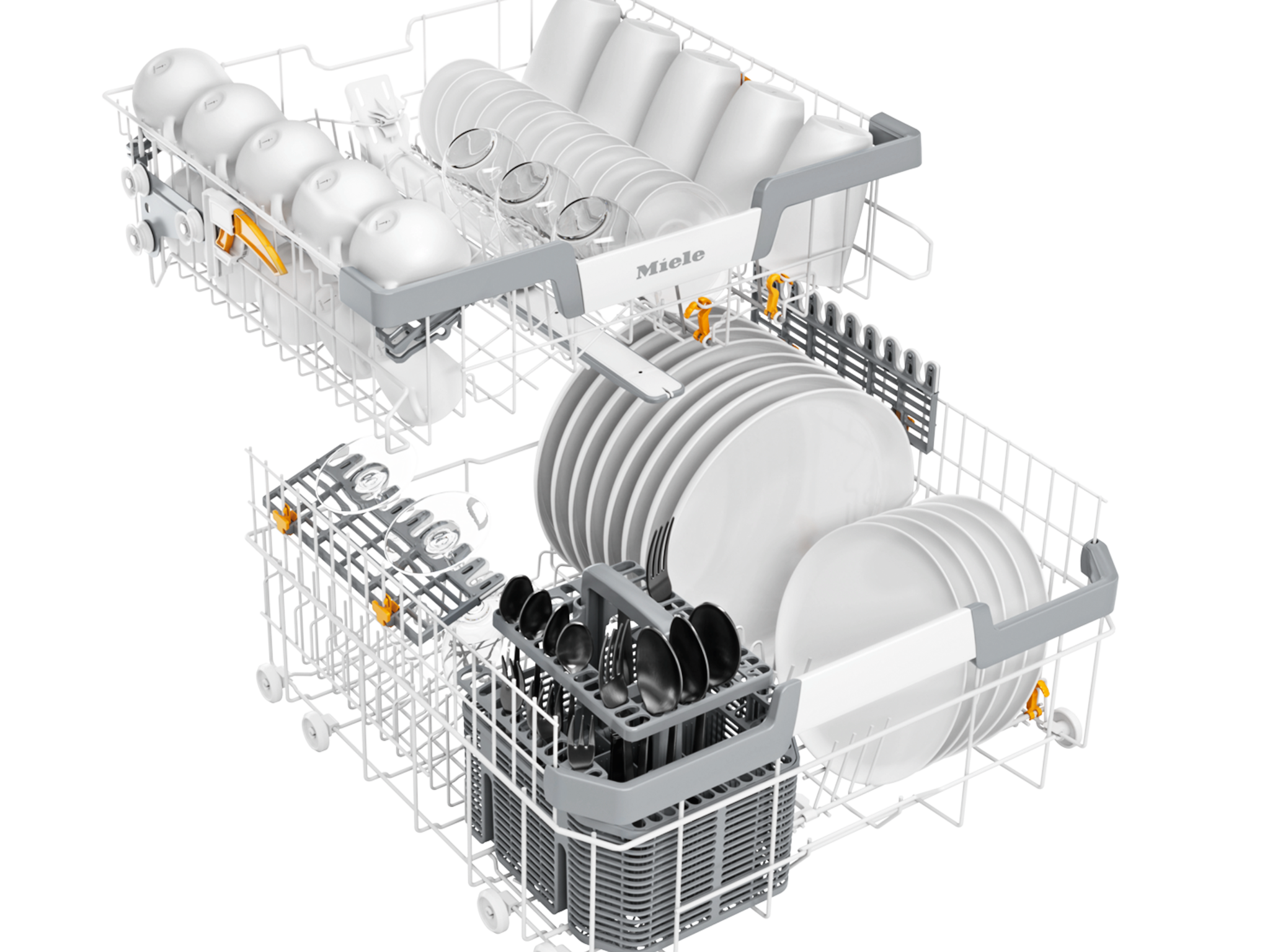 Varijabilno: košara za pribor za jelo može se fleksibilno postaviti na prednje redove zubaca donje košare.